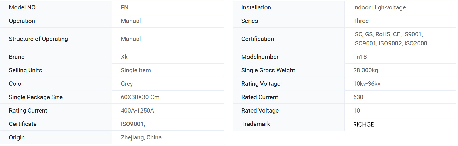FN18 Series Bağlı Yüksək gərginlikli yük açarı asan dizayn, əməliyyat, kompakt quruluş, kiçik həcm, tam funksiya, yüngül arıqlama, sürətli qırılma və bağlanış sürətinin və yüksək etibarlılıq üstünlüklərinə malikdir. Xüsusilə şəhər şəbəkəsi və təmir layihələri, yüksək mərtəbəli binalar, ring-tipli binalar, rabitə şəbəkəsi üçün ideal bir məhsul və transformator qorunması üçün ideal bir məhsul olan 24 kV, 24 kV, 24 kV və üç fazalı paylama sistemi üçündür.