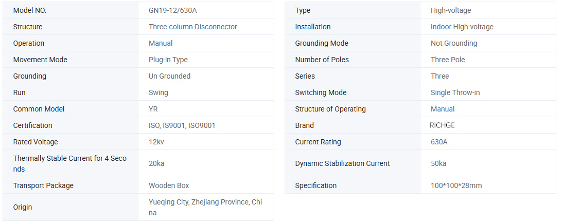 GN19-12 (c) Seriya Bağlı AC Yüksək gərginlikli izolyasiya açarı AC 50Hz, qiymətləndirilən gərginlik 12 kV və aşağıda güc sisteminə uyğundur, CS6-1 əl əməliyyatı mexanizmi ilə təchiz olunmuşdur və yüklənmədən və dövrə daxilində dövrə çəkmək üçün istifadə olunur. Əlavə çirklənmə növü, yüksək hündürlük növü və tipi göstərən güc var. Bu, IEC 62271-102 olaraq edilir. Elektrik cihazları gərginlik şəraiti altında elektrik cihazlarını dəyişdirmək üçün istifadə olunur, ancaq heç bir yük, plato tipi və quraşdırıla bilən canlı ekran cihazları istehsal etmək üçün də göndərilir. GN19-12 Series Bağlı Yüksək Gərginlik İzolyasiya Sürücüsü, 12KV və üç fazalı AC 50hz qiymətləndirilmiş gərginliyi olan qapalı bir cihazdır.