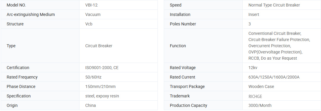 VBI Bağlı Yüksək gərginlikli vakuum dövrə qırıcısı, 12 kV və 24 kV qapalı komfort geyimləri, elektrik stansiyaları və yarımstansiyalar, elektrik qurğuları və tez-tez əməliyyat yeri üçün nəzarət və qorunma. Bahar Əməliyyat mexanizmi və dövrə açarının inteqrasiya olunmuş, dizaynını müəyyənləşdirən dizayn bir quraşdırma bölməsi kimi istifadə edilə bilər, istifadə edilə bilən xüsusi əvvəlcədən mexanizm, istifadə olunan əl dəsti vahidinin tərkibi ilə təchiz oluna bilər. Bəzi əsas dövrə bütün bərk möhür postundan istifadə edə bilər, kiçik dövrə qırıcıları, yüksək etibarlılıq, istismarsız, evdəki digər HandCart açar kabineti ilə təchiz edilmiş Sabit XGN SwitchGear ilə də istifadə edilə bilər.